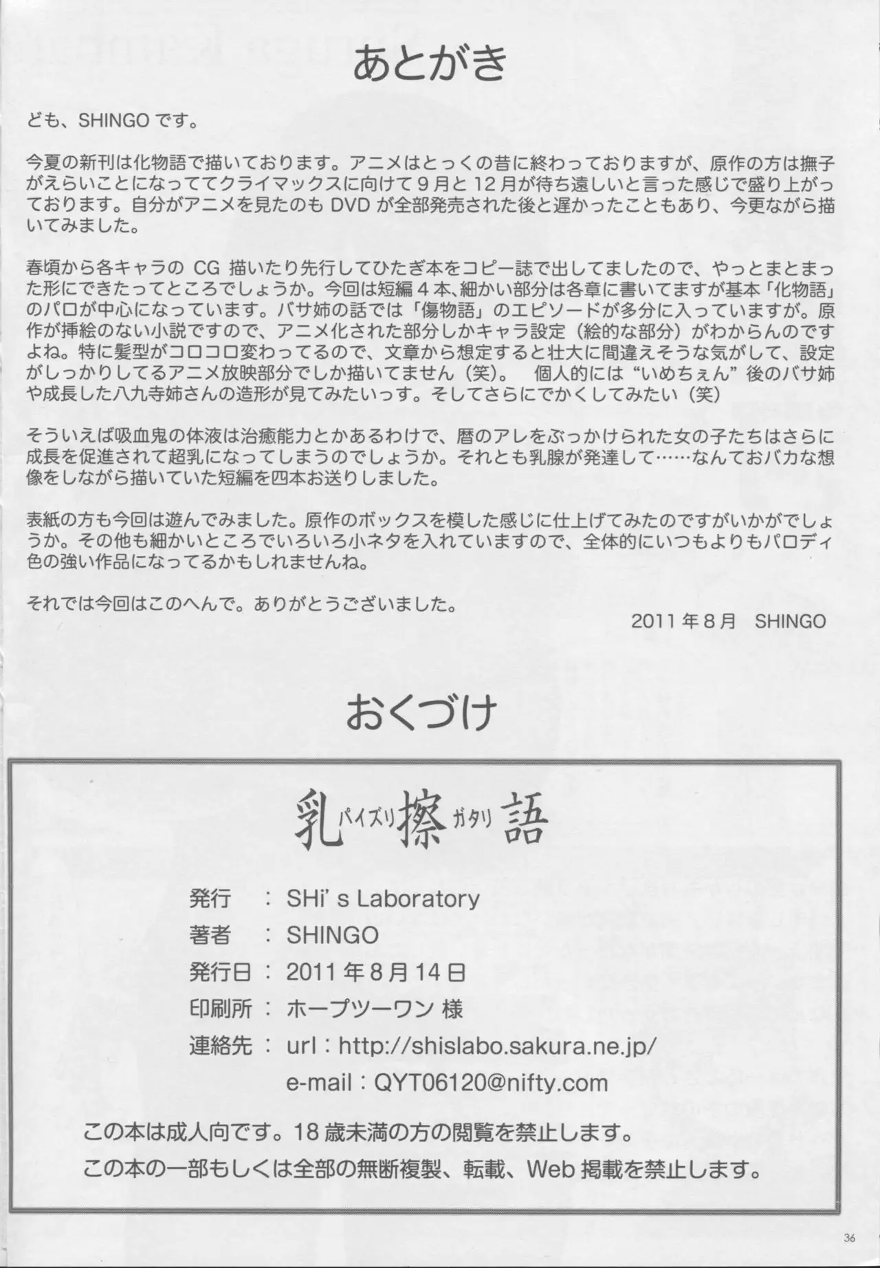 (C80) [SHi's Laboratory (SHINGO)] Paizurigatari (Bakemonogatari)
